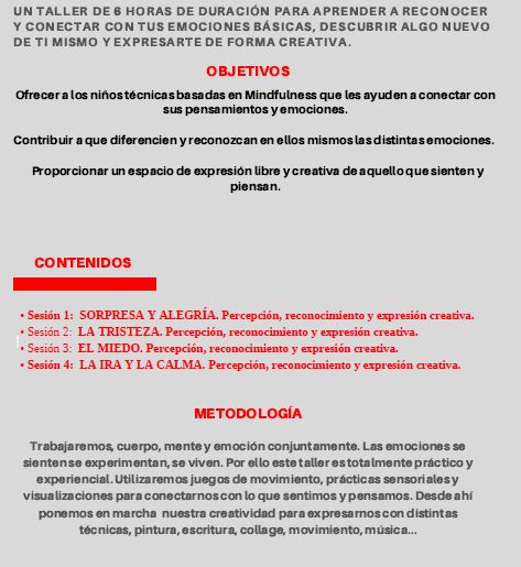 EmocionARTE TALLER DE EMOCIONES Y CREATIVIDAD PARA NIÑOS DE 4 a 12 años Contáctanos y te contamos más: VolverSe ha enviado tu mensaje Nombre(obligatorio) Advertencia Correo electrónico(obligatorio) Advertencia Web Advertencia Mensaje Advertencia ¡Aviso! Enviar Δ Comparte esto: Haz clic para compartir en X (Se abre en una ventana nueva) X Haz clic para compartir en LinkedIn (Se abre en una ventana nueva) LinkedIn Haz clic para compartir en Facebook (Se abre en una ventana nueva) Facebook Haz clic para compartir en WhatsApp (Se abre en una ventana nueva) WhatsApp Me gusta Cargando...